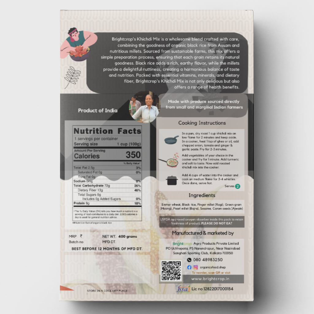 Brightcrop’s Black Rice Khichdi is a powerhouse of nutrition, crafted with antioxidant-rich black rice and lentils. This wholesome mix is easy to cook and delicious to eat, making it an excellent meal choice for health-conscious families. For those searching the Black Rice Khichdi 400 gm pack price, Brightcrop offers unmatched quality at affordable rates.