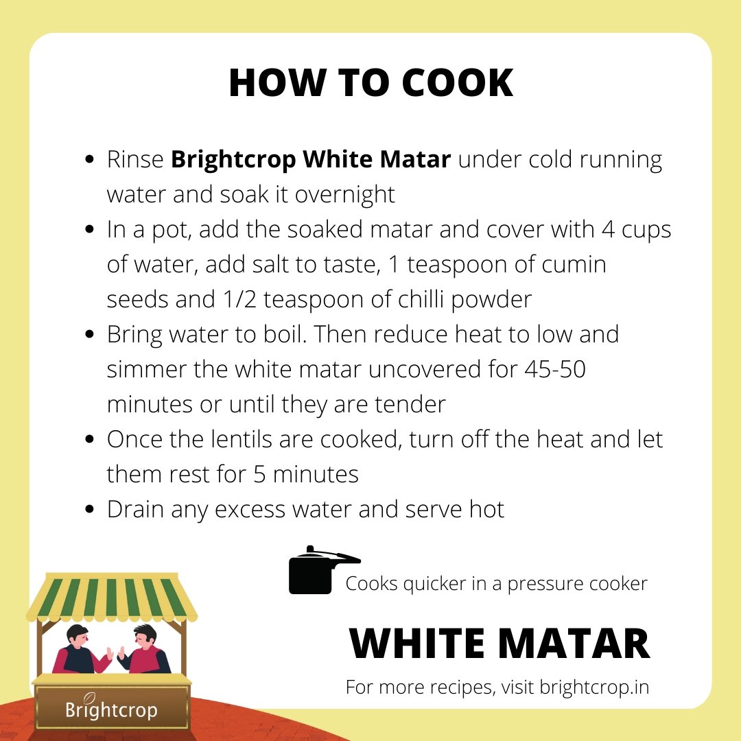 Description: Brightcrop White pea is smaller and white in color. They have a subtle flavor and a starchy texture. They are not only nutritious but also versatile, making them a valuable addition to your meals.
