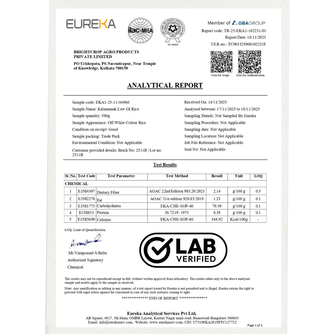 Sourced directly from its birthplace, Kalanamak Rice Siddharthnagar origin is celebrated as the “Buddha’s Rice” for its ancient legacy. At Brightcrop, we ensure you get the most authentic grains with clear pricing – from Kalanamak Rice Siddharthnagar origin Price per kg to convenient family packs like Kalanamak Rice Siddharthnagar origin 5kg Price. Known for its rich aroma, high iron content, and traditional taste, this rice is a healthy and flavorful addition to your meals. Buy with confidence and enjoy heritage straight from Siddharthnagar.
