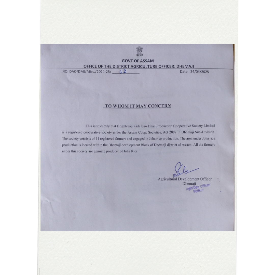 Brightcrop Polished Joha Rice, 30KG [No added color or flavor, Natural, Indigenous Variety - Kunkuni Joha]